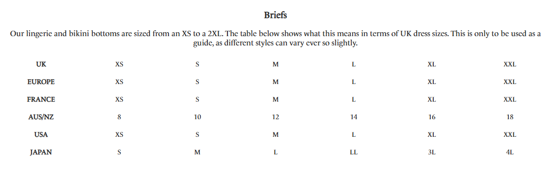 "Designed with comfort in mind, this one size brief (XS-XL) adapts to your body shape and uses seam free technology for a soft, even finish under clothes."