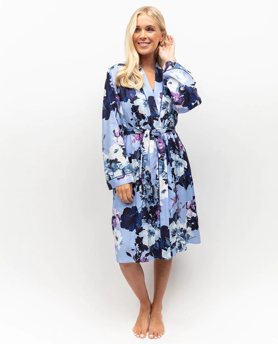Floral Lace 3/4 Sleeve Robe - Blue Peony