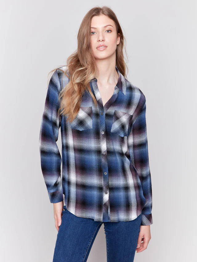 PLAID COLLARED FLARE SHIRT DRESS